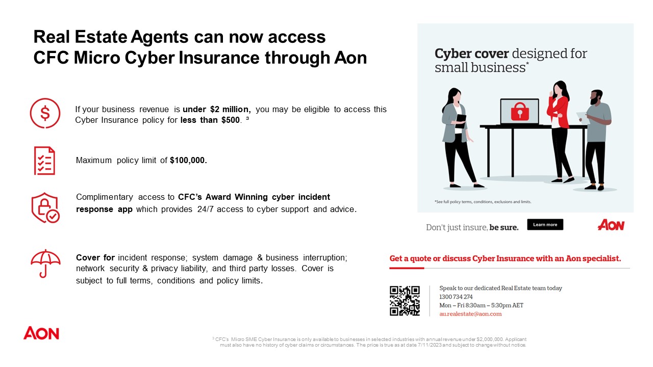 I have been speaking with the real estate division at Aon, who always provide me with the horror stories in relation to cyber and insurance, and they informed me that they have developed a Cyber product particularly for real estate offices with an income under $2,000,000. Naturally, they also have products for agencies with a larger income.